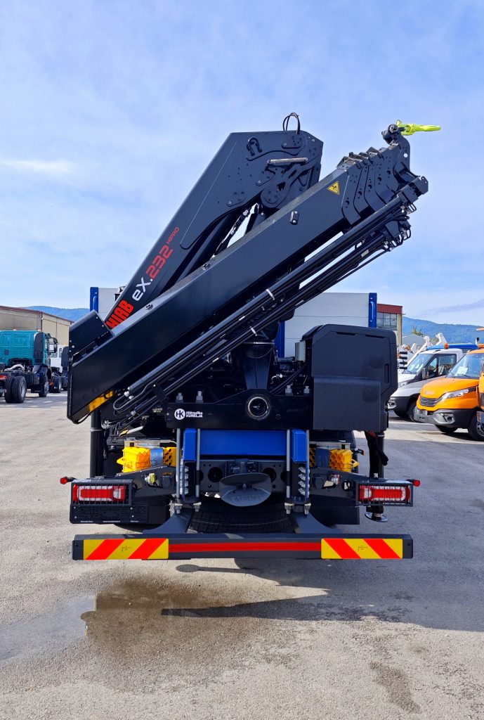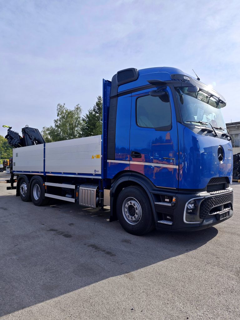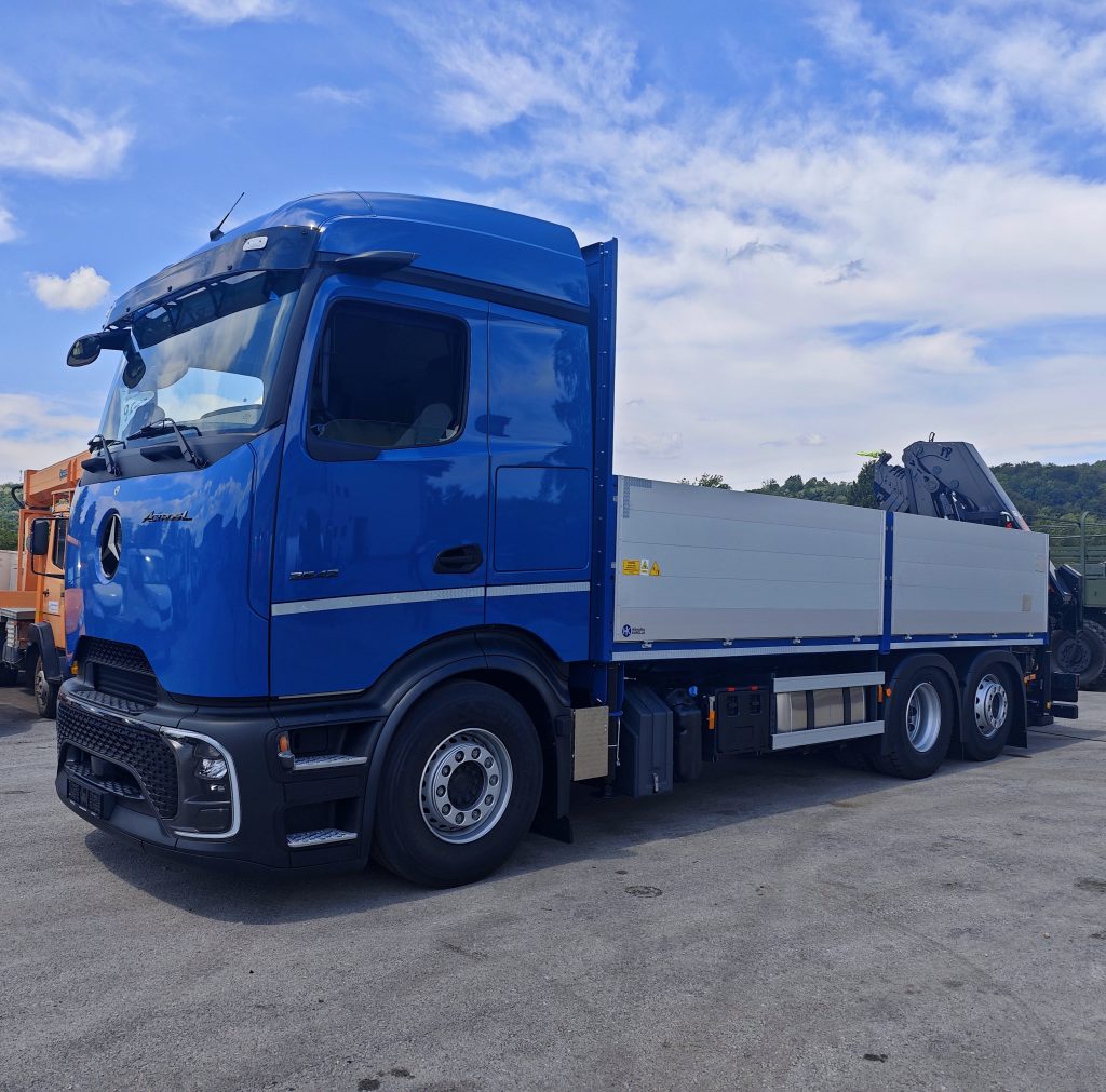 Nova isporuka – vrhunska dizalica HIAB eX.232 HiPro E-5 s aluminijskim tovarnim sandukom TS-50, ugrađenu na Mercedes-Benz Actros 5 2542 L 6×2. Radi se o snažnom i inteligentnom rješenju, spremnom za najzahtjevnije građevinske zadatke.